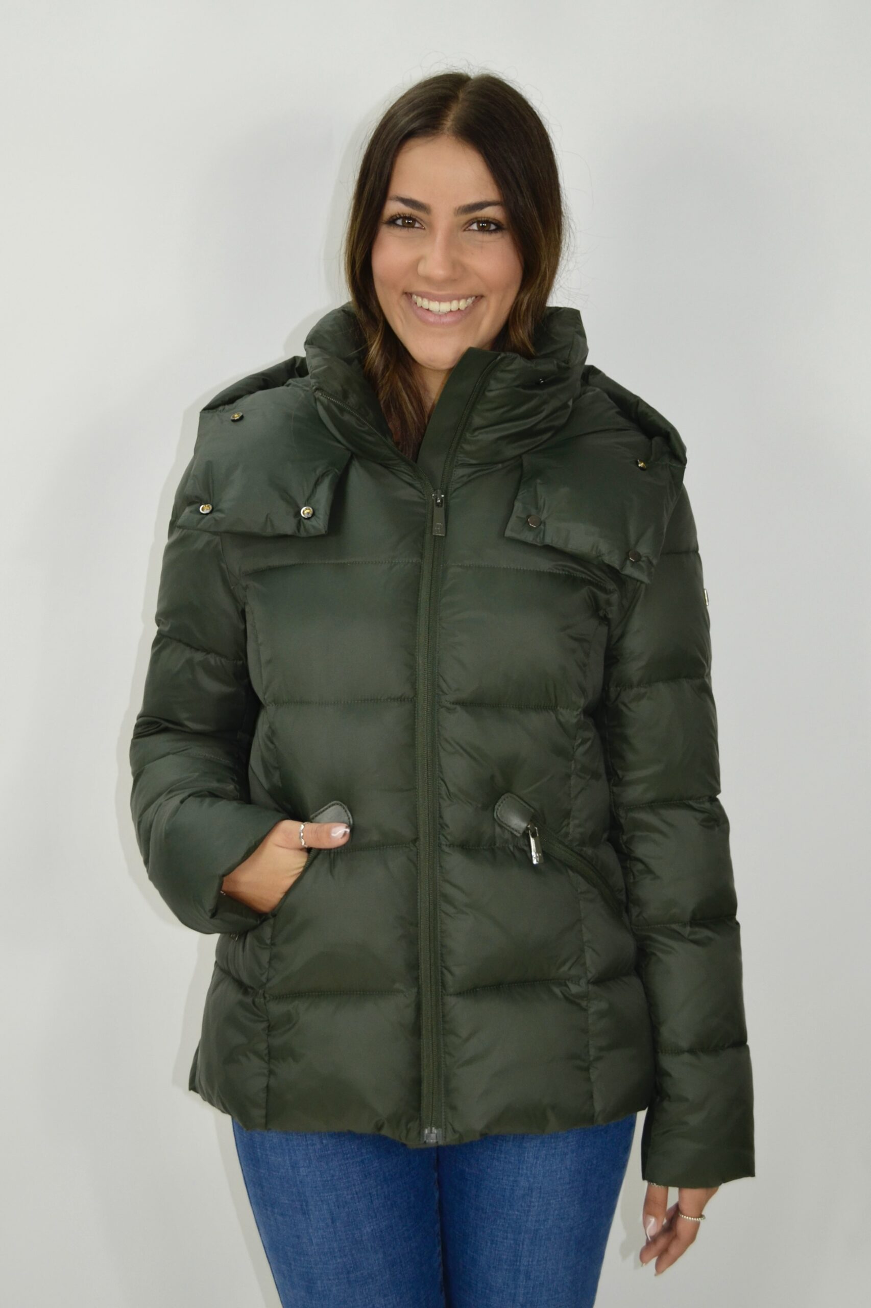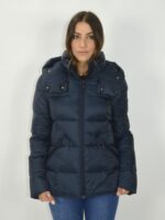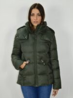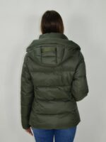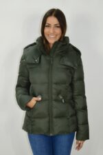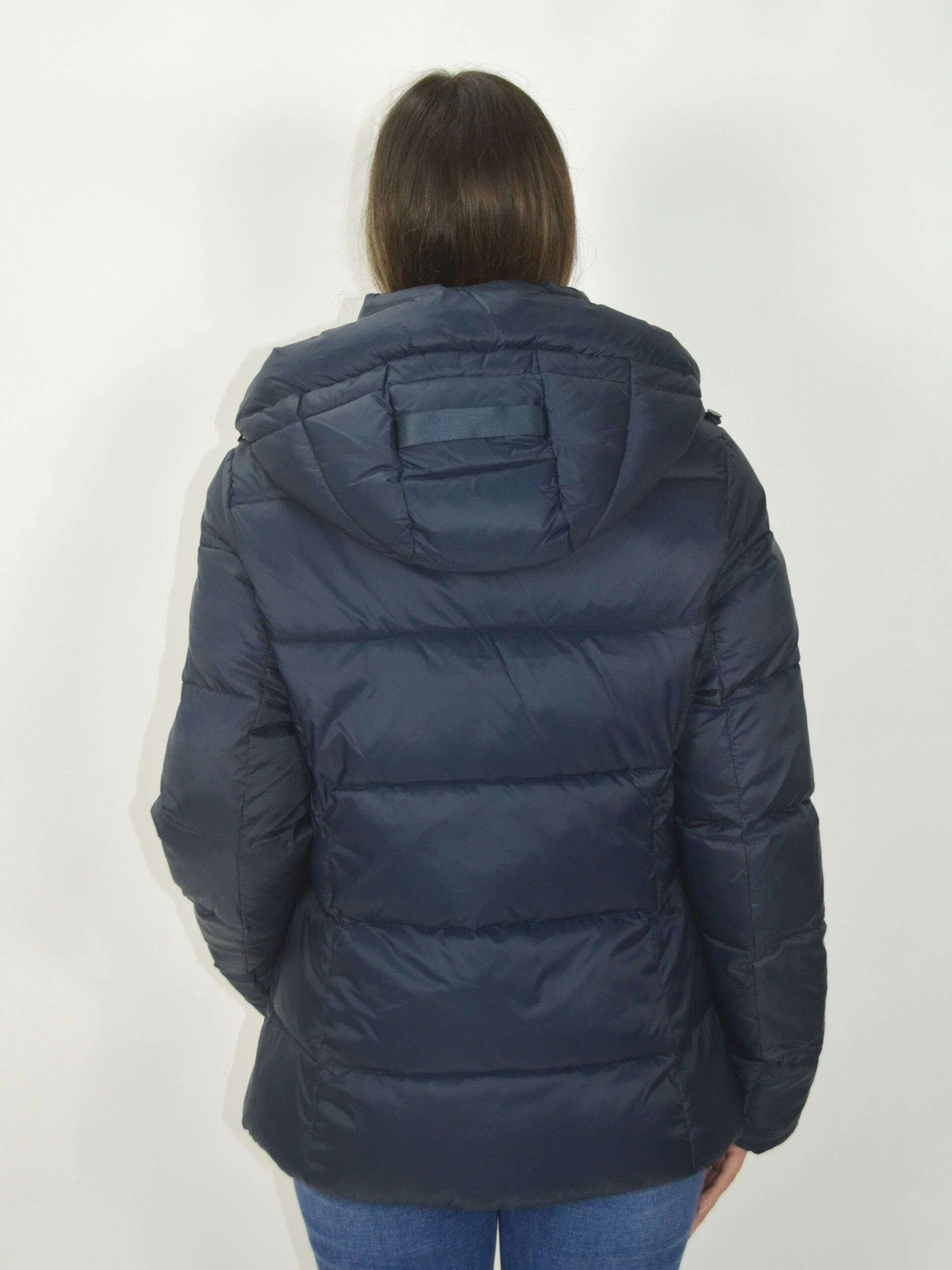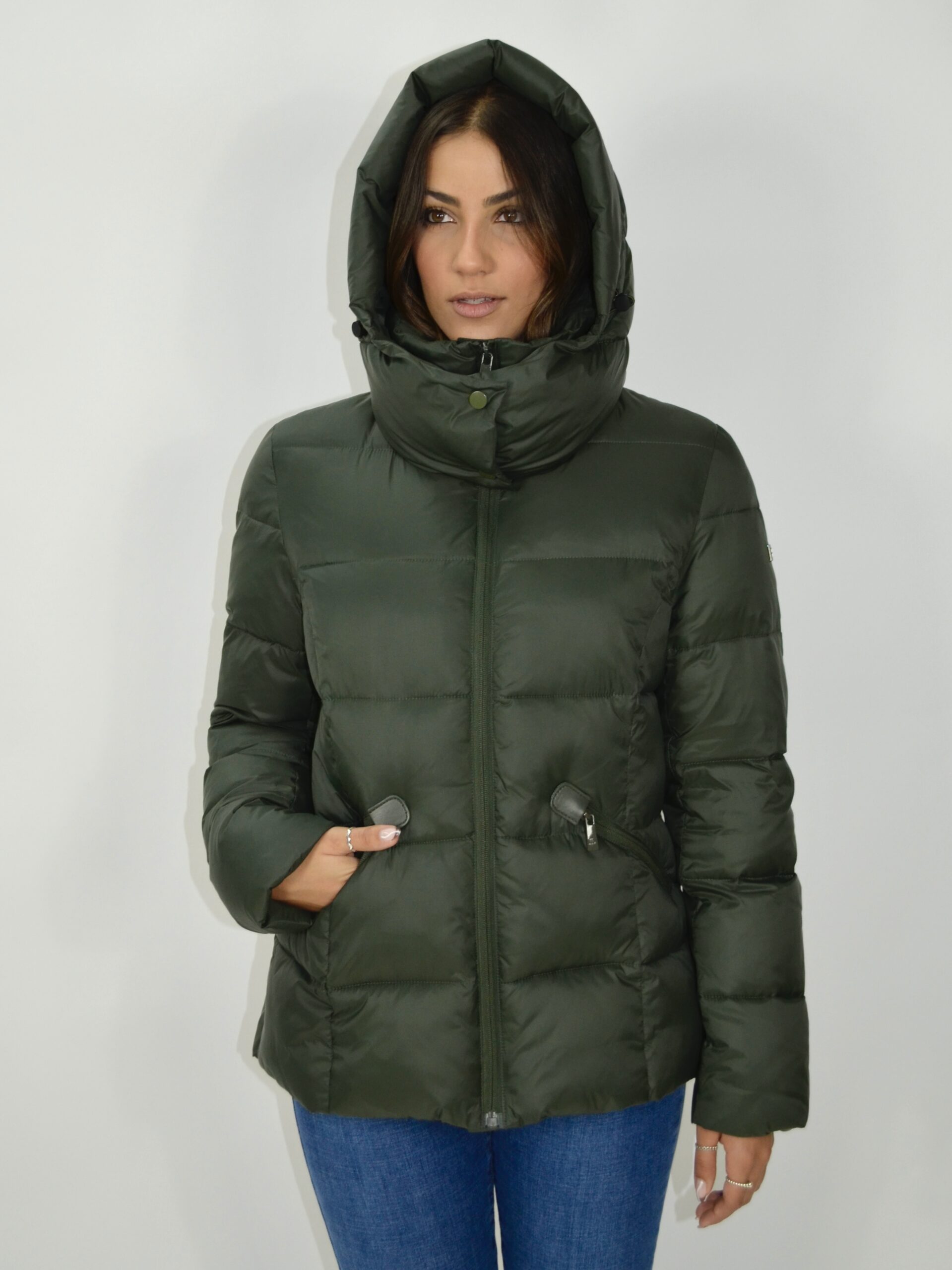 Casaco acolchoado em tecido técnico, com superfície lisa e volume estruturado. O capuz integrado reforça a proteção e cria uma linha moderna. O fecho frontal e os bolsos laterais com fecho acrescentam funcionalidade discreta. O acolchoamento distribui o calor de forma equilibrada e oferece um ajuste confortável, ideal para coordenar com denim ou malhas de inverno.